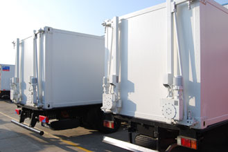 隨著武器裝備的快速發展,作為各型設備裝載用的方艙已經得到了普遍使用。為了減少使用吊車、鏟車裝卸方艙時的諸多不便,因此采用了方艙升降機構,它可以方便地把方艙從裝載車輛上卸下和裝上,升降機構現已成為方艙必備的裝卸工具。同時也可用于車載集裝箱的升降使用。